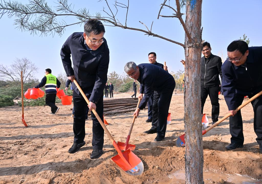 當(dāng)日上午,朱曉東一行抵達(dá)牧馬河生態(tài)公園植樹(shù)點(diǎn),首先聽(tīng)取忻府區(qū)牧馬河生態(tài)公園項(xiàng)目總體規(guī)劃情況匯報(bào),詳細(xì)了解牧馬河流域生態(tài)修復(fù)工程項(xiàng)目進(jìn)展情況。隨后,大家拿起鐵鍬、水桶等工具,走向植樹(shù)地點(diǎn),分工協(xié)作、配合默契,鏟土、移苗、扶苗、澆水、踩實(shí)……植樹(shù)現(xiàn)場(chǎng)繁忙而有序,一派熱火朝天景象。春風(fēng)過(guò)處,一株株新栽種的苗木錯(cuò)落有致、迎風(fēng)挺立,萌發(fā)著無(wú)限生機(jī)和希望。