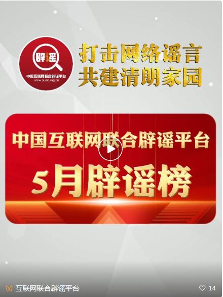 打擊網絡謠言 共建清朗家園 中國互聯網聯合辟謠平臺5月辟謠榜