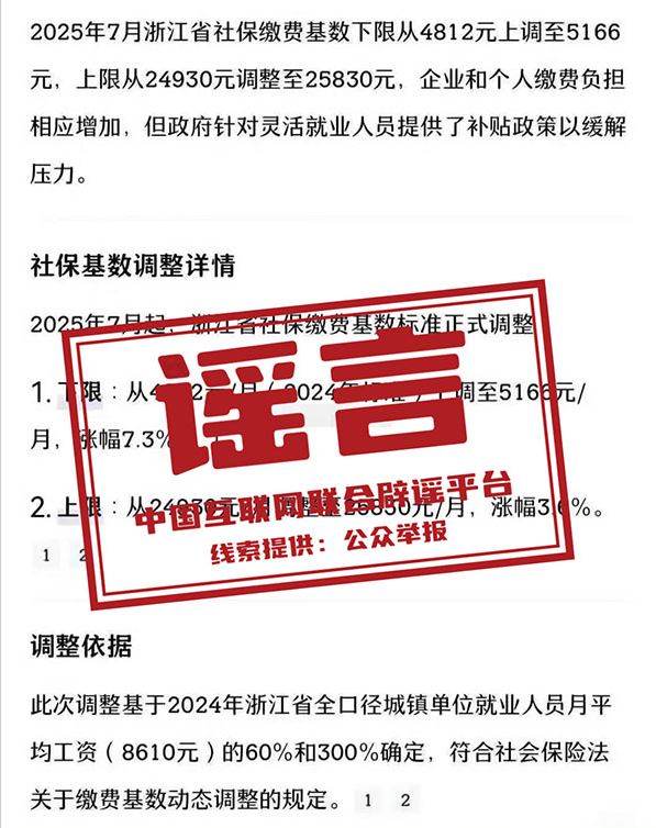 謠言:2025年杭州社?;鶖?shù)下限上調(diào)至5166元?