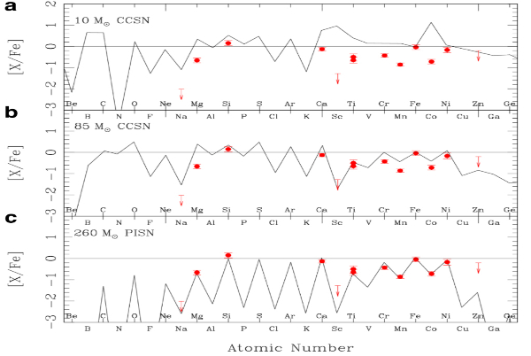 此項研究中,團隊結(jié)合郭守敬望遠鏡低分辨率光譜和日本昴星團望遠鏡高分辨率光譜數(shù)據(jù)發(fā)現(xiàn)了一顆化學(xué)豐度極為特殊的極貧金屬星(LAMOST J1010+2358),這顆恒星的化學(xué)豐度特征無法通過核坍縮超新星理論模型解釋,卻與260倍太陽質(zhì)量的對不穩(wěn)定超新星理論計算結(jié)果高度吻合。