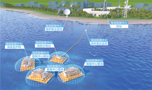 沉入海底的數(shù)據(jù)艙并非就此成為“孤島”,它與岸站、水下分電站和海底光電復(fù)合纜共同組成了海底數(shù)據(jù)中心。海底光電復(fù)合纜聯(lián)通其余3部分,將電力和網(wǎng)絡(luò)分配到每一個獨(dú)立的海底數(shù)據(jù)艙。