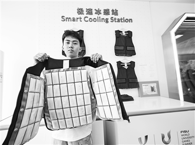 工作人員展示“降溫背心”。新華社記者 王曦?cái)z