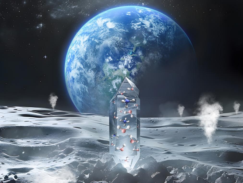 月球表面含水礦物形成效果圖。(中國科學(xué)院物理研究所供圖)
