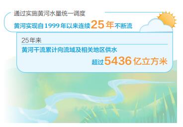 黃委統計顯示,25年來,黃河干流累計向流域及相關地區(qū)供水超過5436億立方米,有效支撐了流域經濟社會發(fā)展和生態(tài)環(huán)境保護。