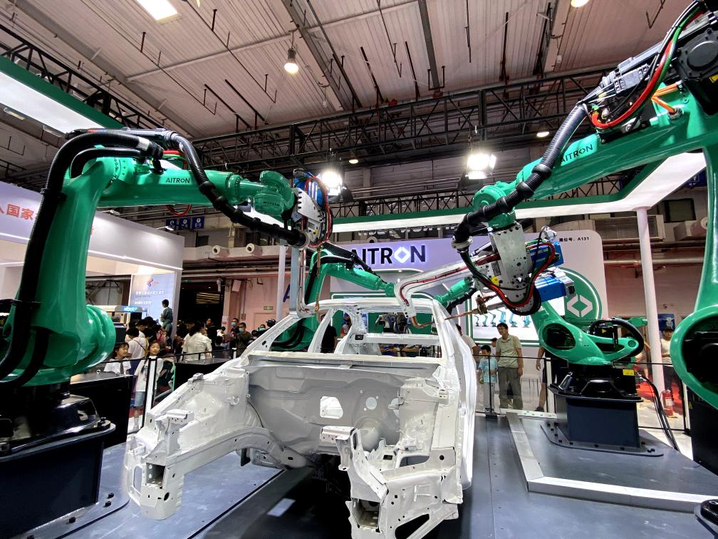 在世界機器人大會現場,各種機械手臂的“全能”操作也讓觀眾驚嘆不已。來自山東的工業(yè)機器人企業(yè)——煙臺艾創(chuàng)機器人科技有限公司首次參加大會,專門帶來多臺210公斤六軸機器人,伸展2.7米長的鋼鐵手臂,為觀眾現場展示汽車自動化焊接技術。