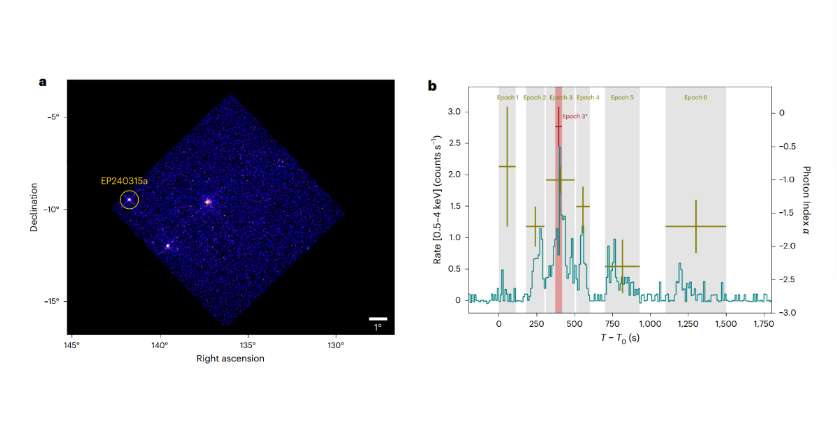 此后,世界各地多個(gè)天文望遠(yuǎn)鏡陸續(xù)觀(guān)測(cè)到EP240315a。研究結(jié)果表明,EP240315a產(chǎn)生于遙遠(yuǎn)的早期宇宙,當(dāng)時(shí)宇宙年齡僅為現(xiàn)在的10%,EP240315a的信號(hào)花費(fèi)了125億年才抵達(dá)地球。