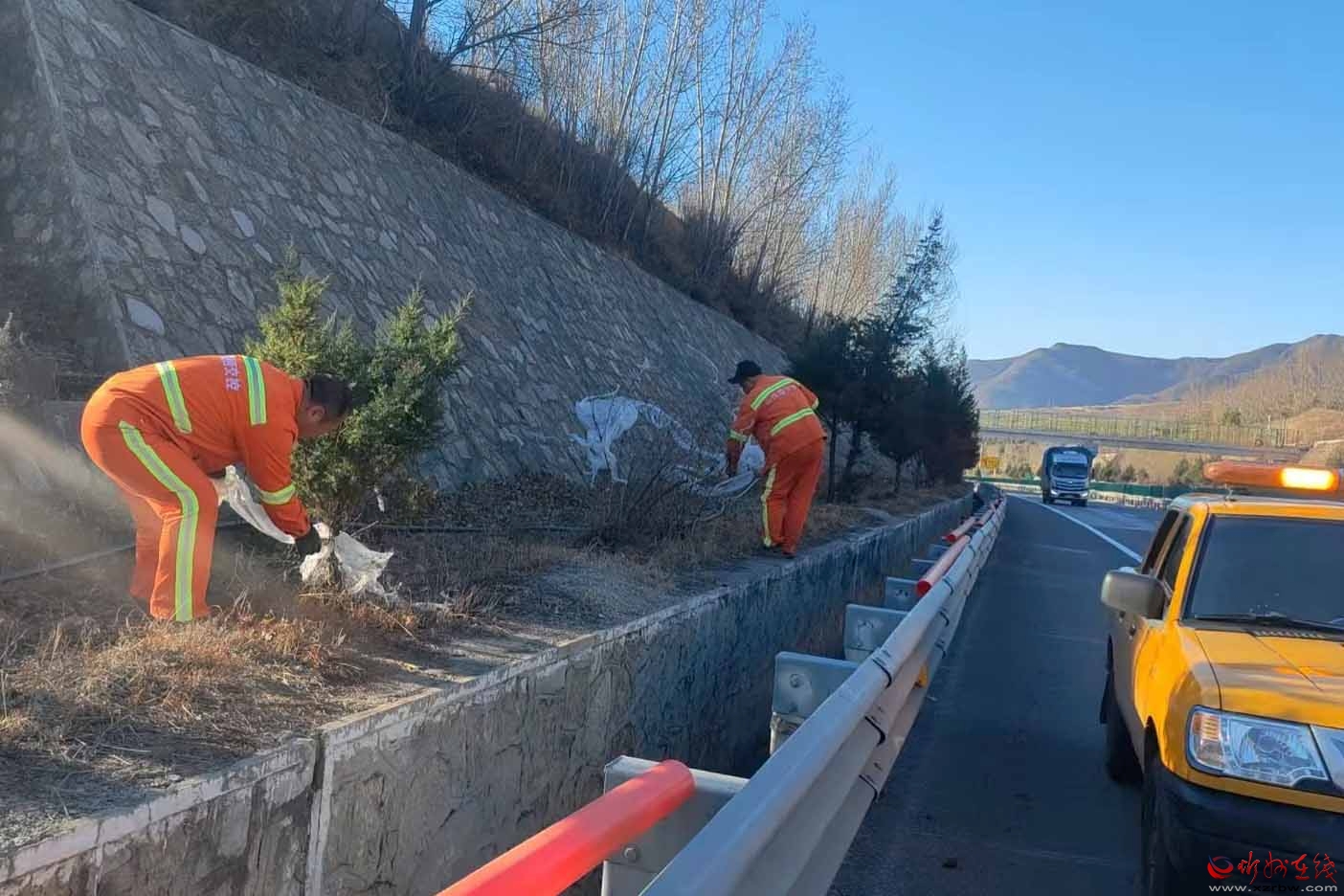 深化日常養(yǎng)護,提升道路“顏值”。常態(tài)化開展路域環(huán)境整治,重點加強服務(wù)區(qū)出入口、匝道等關(guān)鍵區(qū)域治理,對路面拋灑物做到“隨見隨清”,確保路域環(huán)境整潔有序。加強道路綠化精細養(yǎng)護,對中央分隔帶苗木進行補植更新,及時清理路肩枯樹、死樹,全面提升道路綠化景觀效果與通行視覺感受。
