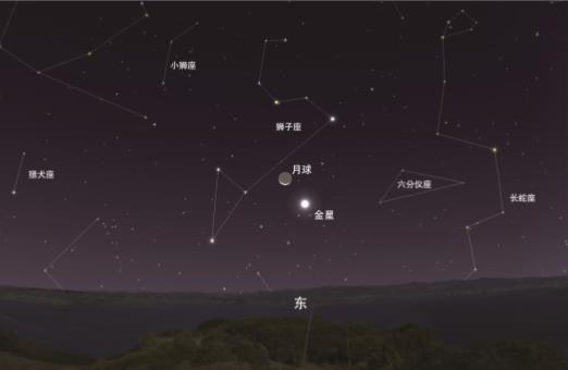 10月14日是農(nóng)歷的八月廿八,月亮以小月牙的形態(tài)與金星相合,周圍有獅子座的亮星相伴。臨近日出時天空還會被曙光染上橙黃色,暗星隱去,月牙、金星和獅子座的亮星交相輝映,觀賞性還是很不錯的。由于當天月亮和金星都是在凌晨升起,所以大家需要起早欣賞這個天象。
