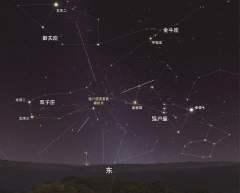 今年獵戶座流星雨極大當天為農(nóng)歷初五,月亮在前半夜很早就落下了,所以月光幾乎不會對流星雨的觀測造成干擾。獵戶座流星雨的群內(nèi)流星特點是速度極快而軌跡長,如果看到這樣的流星并且軌跡反方向指向獵戶座附近,那基本可以判斷為該流星雨的群內(nèi)流星。