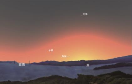 2020年10月1日,日落時的西南方天空示意圖。(北京天文館供圖)
