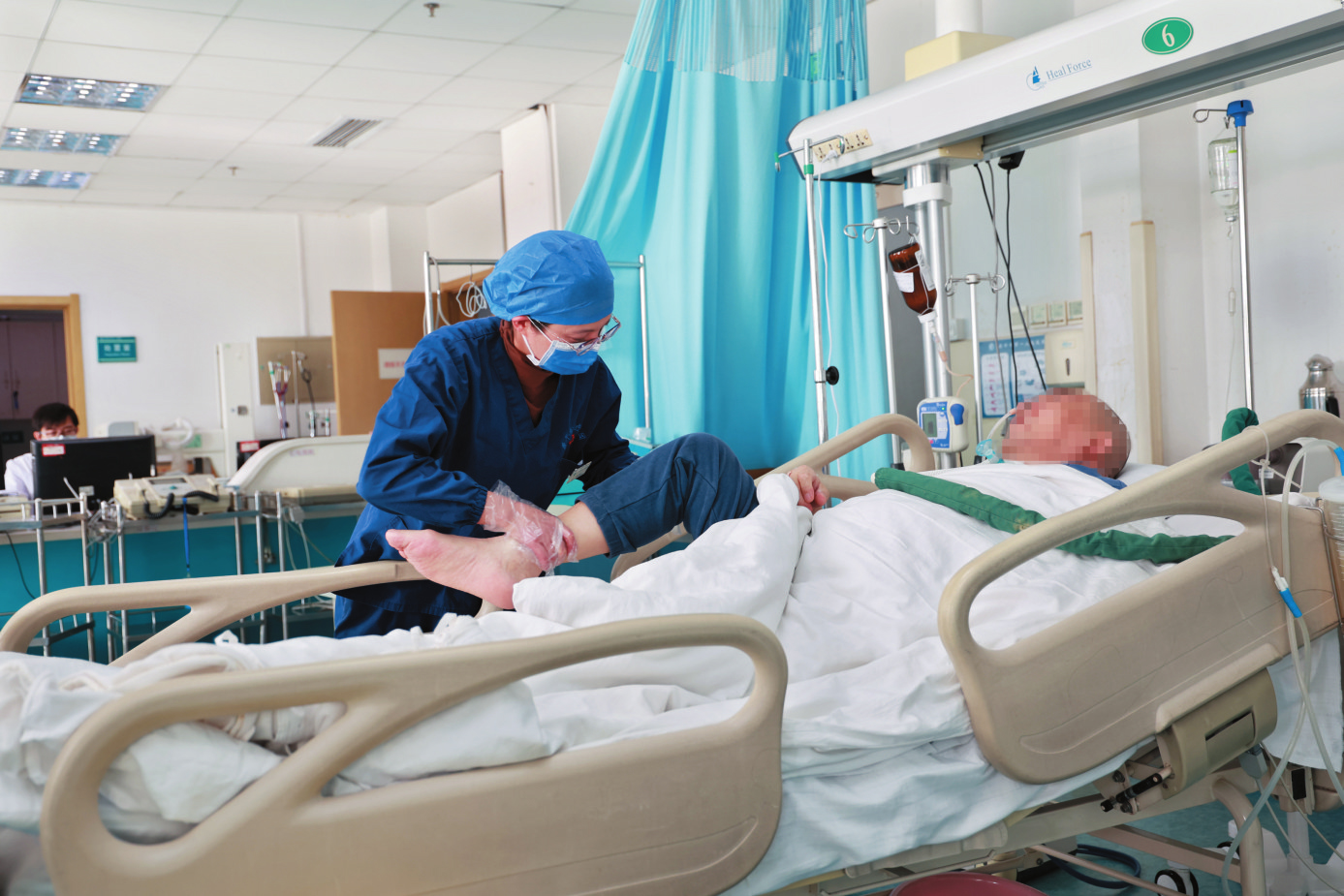 “相比普通病房,ICU護(hù)士的工作要更繁瑣,使用到的醫(yī)療器械要更多,面對(duì)的突發(fā)事件也多,要隨時(shí)做好與‘死神’搏斗的準(zhǔn)備。”任文霞一邊細(xì)心地更換夾在患者手指的氧飽和度儀,避免患者壓到導(dǎo)線,一邊在忙碌間隙告訴記者,“ICU病房不允許家屬陪護(hù),病人的進(jìn)食、翻身、清洗等所有護(hù)理都由護(hù)士獨(dú)立完成,面對(duì)這些瑣碎的細(xì)活,護(hù)理工作必須要嚴(yán)謹(jǐn)細(xì)微,不能有絲毫怠慢?!?/p>
