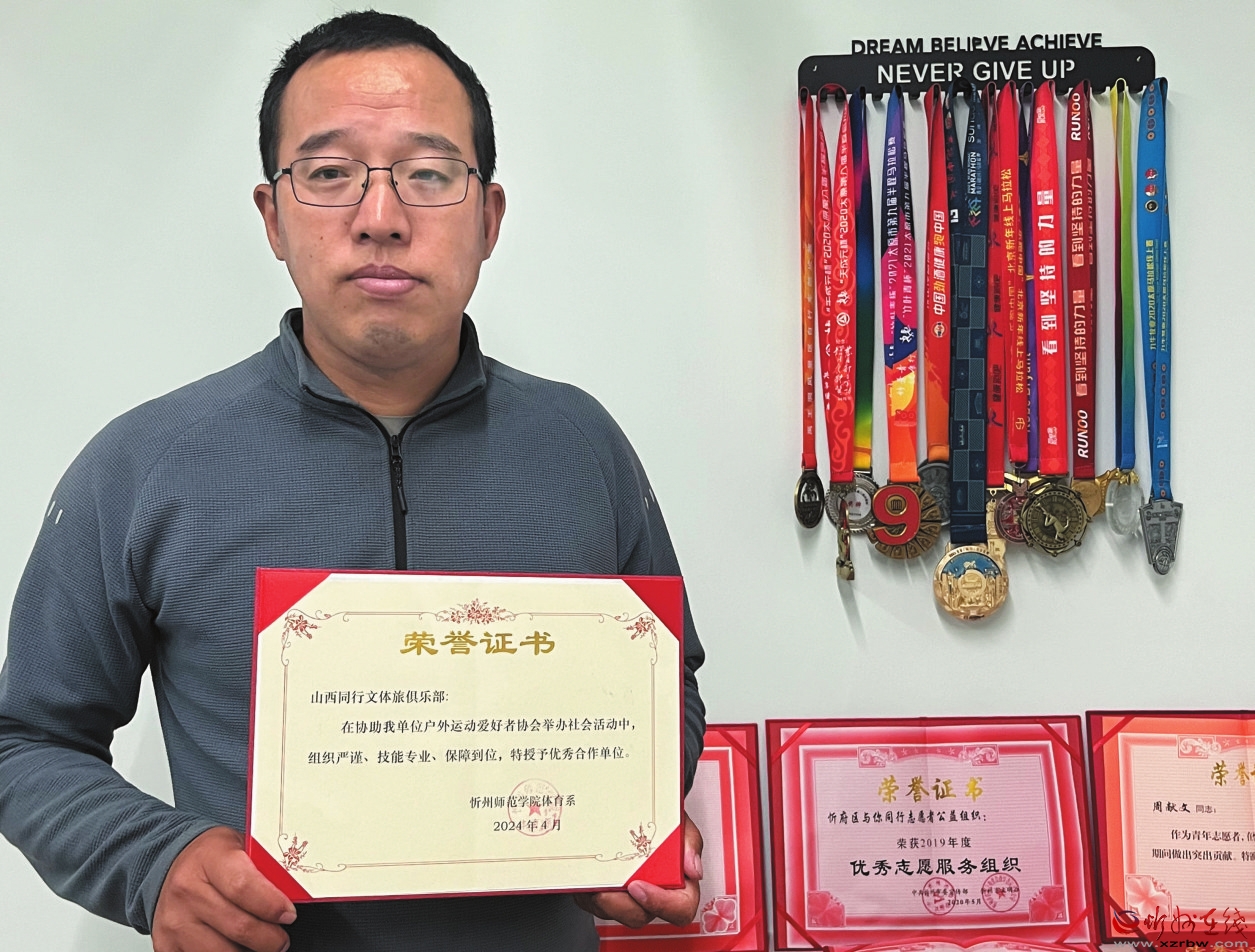近年來(lái),他以宣傳保護(hù)環(huán)境、擁抱低碳生活為主題,先后組織舉辦了25次行走長(zhǎng)城專題活動(dòng)、5屆滹沱河徒步大會(huì)、4期無(wú)痕山野環(huán)保公益活動(dòng),多次義務(wù)清潔劉家山、森林公園、雙乳湖等處的野外垃圾,舉辦跑步、騎行、徒步等全民健身活動(dòng)370多期,有近1萬(wàn)多人次參加。2023年承辦的忻州市體育局迎新年全民健身活動(dòng)、協(xié)助忻州師院體育系開展的休閑體育活動(dòng)等均受到相關(guān)部門表彰和肯定。