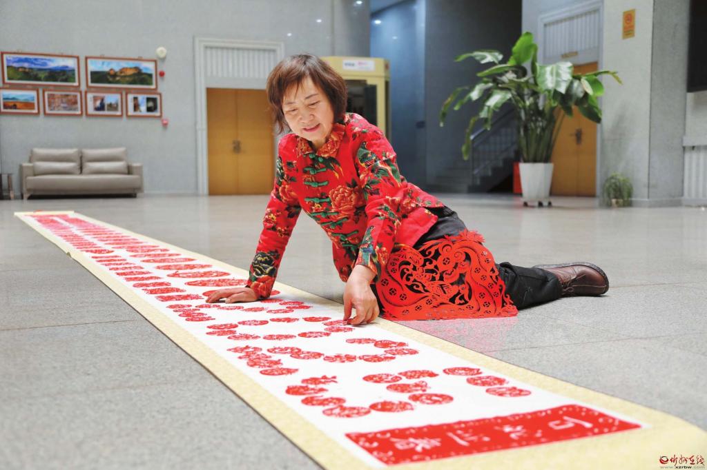 生肖剪紙是韋東梅剪紙作品的重要內(nèi)容,每年她都會(huì)創(chuàng)作不少于20種風(fēng)格的生肖剪紙作品饋贈(zèng)親朋好友。創(chuàng)作“百蛇迎春”系列作品,是她去年國慶后就展開的一項(xiàng)工作。“我本人經(jīng)歷過貧窮和落后,見證了家鄉(xiāng)岢嵐脫貧攻堅(jiān)成效顯著,作為非遺傳承人,我希望用我的方式,用非遺的美,來祝福國泰民安,祈愿幸福久長。”正是有了這樣的想法,韋東梅全身心地投入到了創(chuàng)作中,有的作品心里有了圖案后就直接上手,有的作品需要先畫草圖然后再剪,每天都要工作10個(gè)小時(shí)以上,剪到深夜一兩點(diǎn)是常有的事。