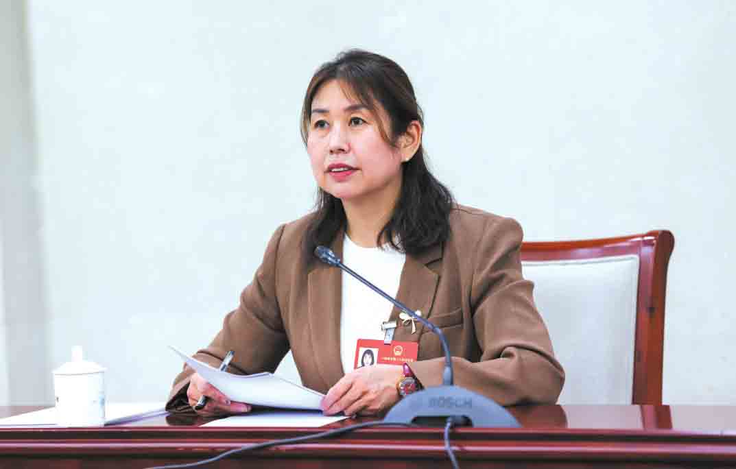 全國(guó)人大代表、山西高陶瓷業(yè)有限責(zé)任公司質(zhì)量控制員范銀蓮正在宣講兩會(huì)精神。