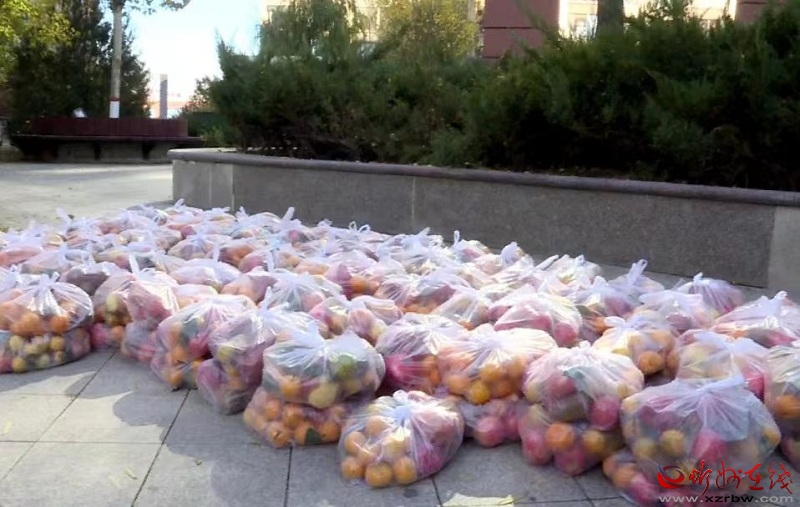 大批裝袋整齊的水果包放在濱河一號小區(qū)樓下,多名物業(yè)工作人員推著便民購物車來回忙碌著,大家統(tǒng)一佩戴口罩,嚴格做好防護措施,挨家挨戶送貨上門,并全程避免與業(yè)主接觸,最大限度地保護廣大群眾的健康與安全。