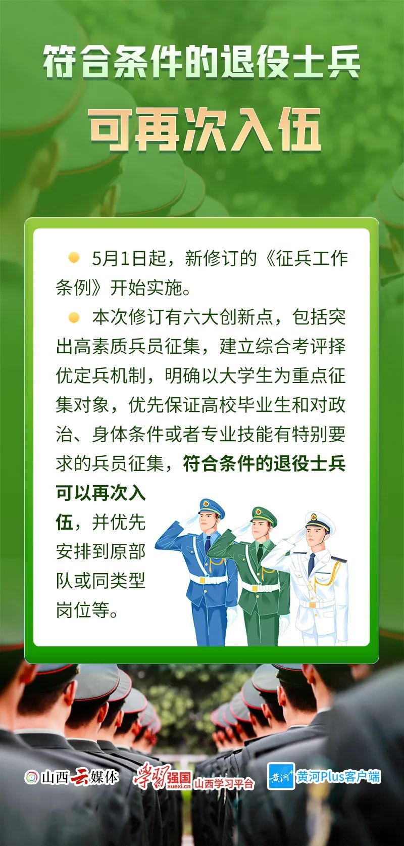 符合條件的退役士兵可再次入伍,禁止食用國(guó)家重點(diǎn)保護(hù)野生動(dòng)物,規(guī)范彈出廣告、開屏廣告……本月起,一批新規(guī)開始實(shí)施,或?qū)⒂绊懩愕纳睢?/p>