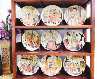 采訪中,提起刻鑿的過程,苗振潔一邊端著自己的瓷盤作品,一邊用手輕撫著那些畫面,就像一位老母親,用慈愛的雙手輕輕摸著孩子的頭,這種回憶,痛并快樂著。苗振潔說:“刻鑿前,構(gòu)思一定要成熟,比如瓷盤里要呈現(xiàn)哪個壁畫上的內(nèi)容,虛實之間要重點打造什么圖像,這9幅作品還要彼此關(guān)照、前后呼應(yīng)。等你構(gòu)思好后,還要先畫線稿,又要不斷修改思路,直到滿意為止。第三步,就是刻鑿了,這個過程就像‘修煉’一樣,創(chuàng)作者必須全神貫注一心一意?!贝蟾庞邪肽甑臅r間,苗振潔就像閉關(guān)一樣,只要起錘那一刻,就要隔絕和外界的一切聯(lián)系。