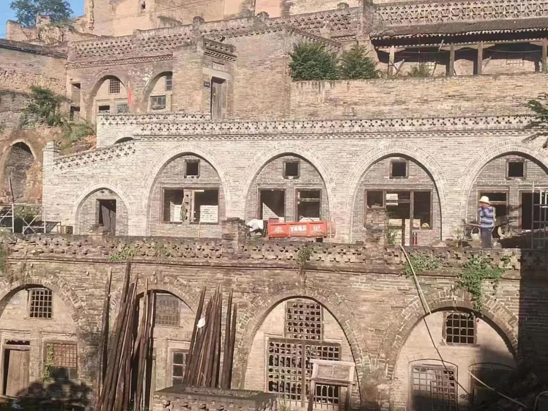 董家?guī)X村原黨支部書記趙志靈介紹,整個古村以村中大槐樹和村對面峻嶺上的魁星樓、文筆塔為軸線分布,東部上下九層,西部上下五層,以巷道為紐帶,立體交疊、明暗互通,穿插于立體交錯的窯洞之間,形成了可居、可匿、可防、可退的多功能山地建筑形態(tài)。
