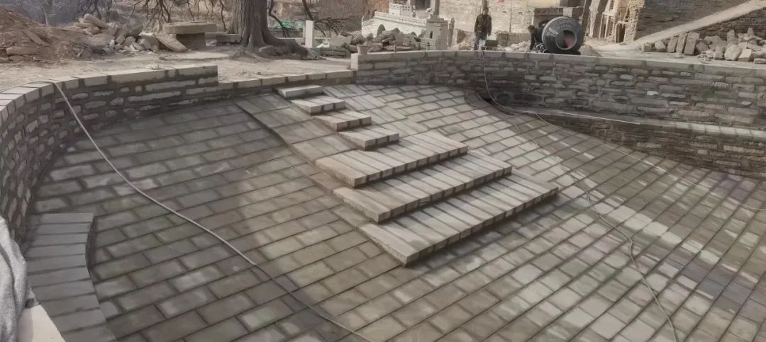 ▲正在進行修復(fù)的泊池,這是古村落排水防洪體系中的一部分