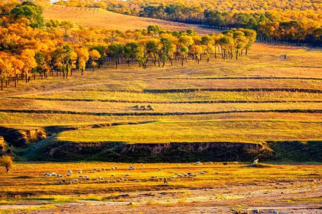 點(diǎn)綴著樹(shù)樹(shù)黃葉逆光下