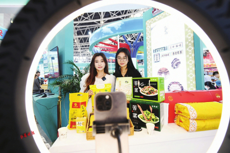 4.第六屆山西文化產(chǎn)業(yè)博覽交易會(huì)上,各路主播紛紛亮相,為當(dāng)?shù)靥禺a(chǎn)代言、促銷。