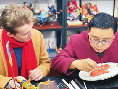 “我在山西過大年”,2月23日,正月十四,省對外友協(xié)組織30余名在晉留學生來到清徐,參加元宵節(jié)民俗體驗活動,看社火、賞非遺、滾元宵、了解老陳醋和葡萄酒文化,留學生們被中國元宵節(jié)的紅火熱鬧氣氛深深感染。來自巴基斯坦的留學生yahya告訴記者:“太有趣了,這是我第一次感受中國的元宵節(jié),和來自不同國家、文化背景的同學們一起慶祝,是我人生中美好的回憶。”為讓留學生沉浸式體驗中國年,省內(nèi)高校各顯神通,或贈送春節(jié)吉祥物、燈籠、年畫等;或組織“筆墨凝書香,春聯(lián)進萬家”手寫春聯(lián)活動;或開展“留學生中國家庭春節(jié)”體驗日,邀請留學生在中國教師家中吃團圓飯,學習剪窗花、做花燈、包餃子,感受中華傳統(tǒng)年文化和家文化魅力。山西醫(yī)科大學國際教育學院院長樊清華說:“在教授好專業(yè)知識的同時,我們要為留學生提供更多了解中國經(jīng)濟社會發(fā)展、中華歷史文化的平臺和機會,通過親身參與春節(jié)文化活動可以幫助他們感知山西、了解中國、讀懂中國?!?/p>