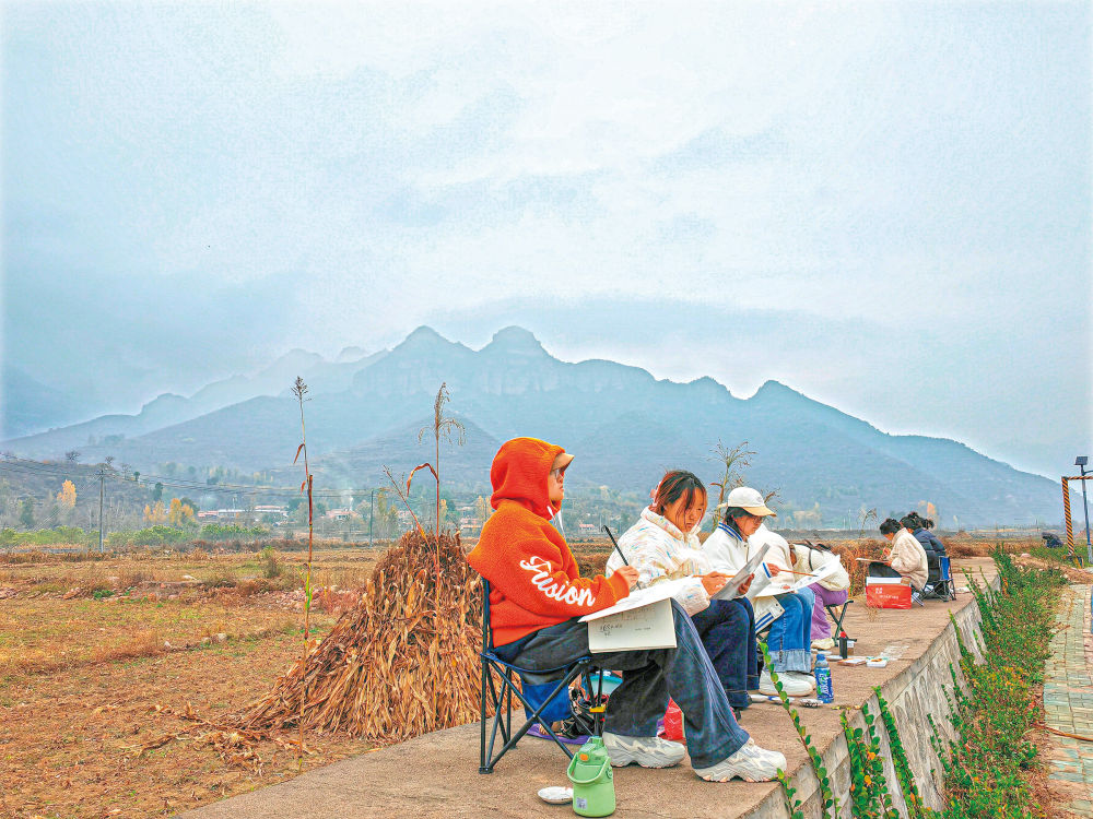 雖然已時(shí)近立冬,但來自晉中學(xué)院的一百多名師生仍堅(jiān)持每天外出寫生?!斑@里是太行山中段最雄美的地方,來到這里可以讓學(xué)生們接受大自然的洗禮,同時(shí)感受地方文化,讓他們積累創(chuàng)作素材的同時(shí)了解農(nóng)村、熱愛農(nóng)村?!睍x中學(xué)院國畫老師孟冠華說。