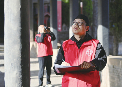 “問診”環(huán)節(jié),團隊成員現場抄錄碑刻、實地走訪文物建筑所在地老者、查閱相關資料典籍求問古人,“問詢”建筑歷史沿革及修繕記錄,制定針對性修復方案。