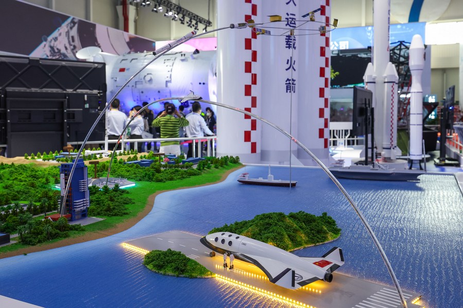 2022年11月11日,中國新一代運(yùn)載火箭模型及發(fā)動(dòng)機(jī)實(shí)物亮相中國航展。新華社記者 劉大偉 攝