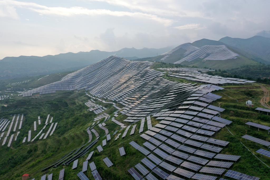 7月12日,山西省芮城縣學(xué)張鄉(xiāng)光伏電站(無人機(jī)照片)。新華社記者 詹彥 攝