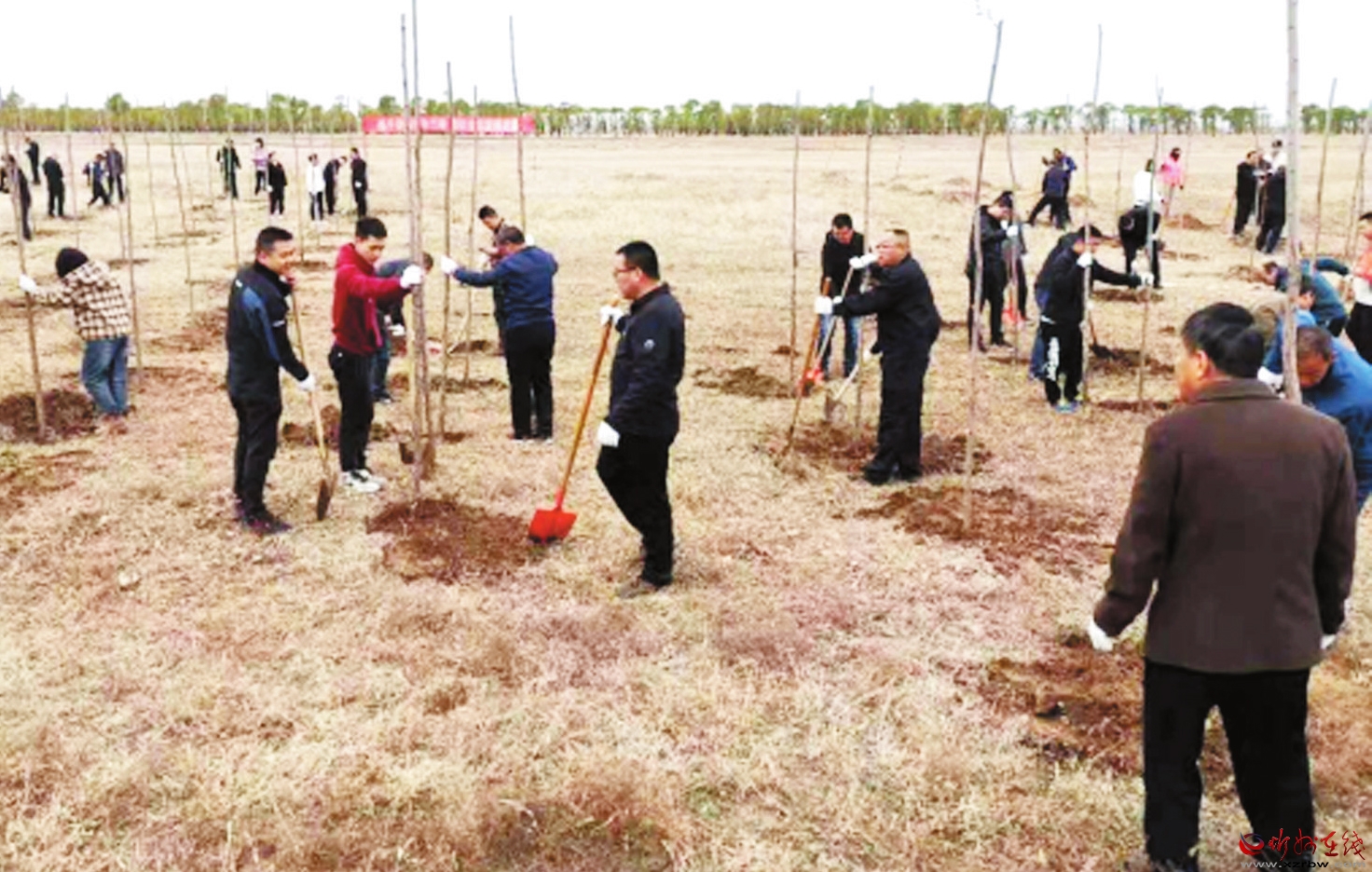 4月13日上午,市生態(tài)環(huán)境局定襄分局在滹沱河定襄縣受祿鄉(xiāng)段開展義務(wù)植樹活動。植樹現(xiàn)場,大家分工協(xié)作,揮鍬挖坑、扶苗澆水,共植樹百余株。該分局還在現(xiàn)場懸掛“積極開展高速沿線環(huán)境綜合整治 持續(xù)改善全縣生態(tài)環(huán)境質(zhì)量”的宣傳標語,營造生態(tài)環(huán)境保護工作良好氛圍。(本報記者 張劍雄 攝)