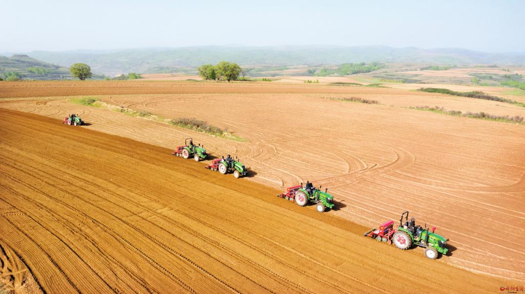 5月23日,寧武縣馬營村村民正在使用機械種植莜麥。寧武縣是莜麥的傳統(tǒng)種植區(qū),2017年,“寧武莜麥”榮獲農(nóng)業(yè)部“農(nóng)產(chǎn)品地理標(biāo)志”登記保護,2020年10月16日,中國糧食行業(yè)協(xié)會命名寧武縣為“中國高原莜麥之鄉(xiāng)”。寧武縣現(xiàn)已建成莜麥標(biāo)準(zhǔn)化種植基地5萬畝,產(chǎn)量達到1260萬公斤,占到山西省莜麥總產(chǎn)量的10%以上,培育發(fā)展起以“蘆芽農(nóng)夫”“鄉(xiāng)之味”等自主品牌為龍頭的莜麥深加工企業(yè)。 (曹建國 攝)
