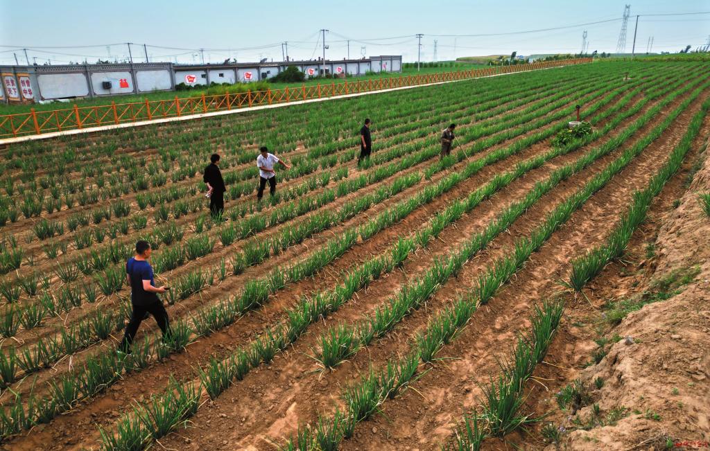 河曲縣樓子營(yíng)鎮(zhèn)柏鹿泉村紅蔥種植基地。 記者宮愛(ài)文攝