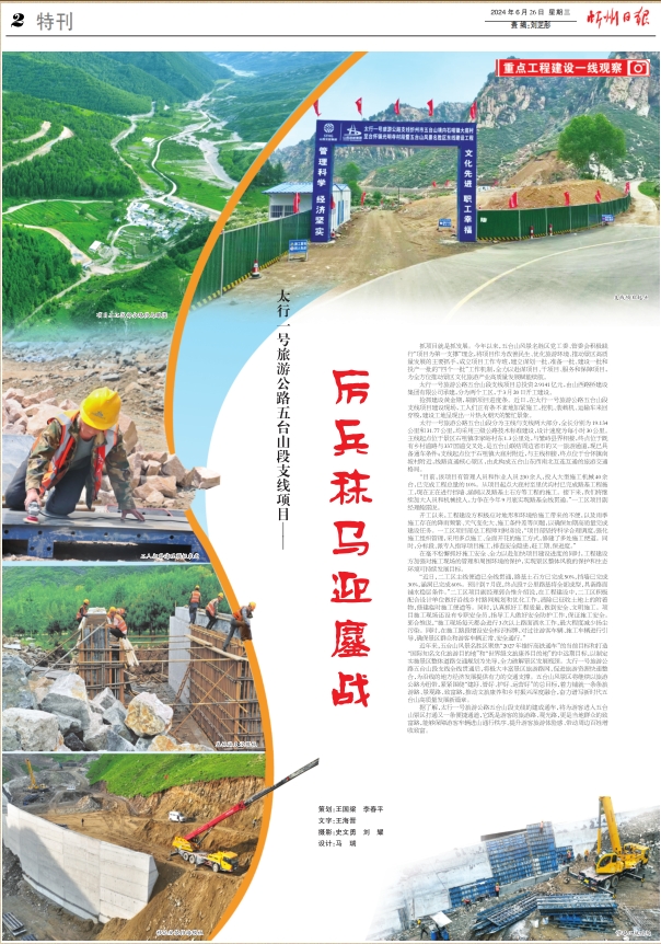 搶抓建設(shè)黃金期,刷新項(xiàng)目進(jìn)度條。近日,在太行一號旅游公路五臺山段支線項(xiàng)目建設(shè)現(xiàn)場,工人們正有條不紊地加緊施工,挖機(jī)、裝載機(jī)、運(yùn)輸車來回穿梭,建設(shè)工地呈現(xiàn)出一片熱火朝天的繁忙景象。