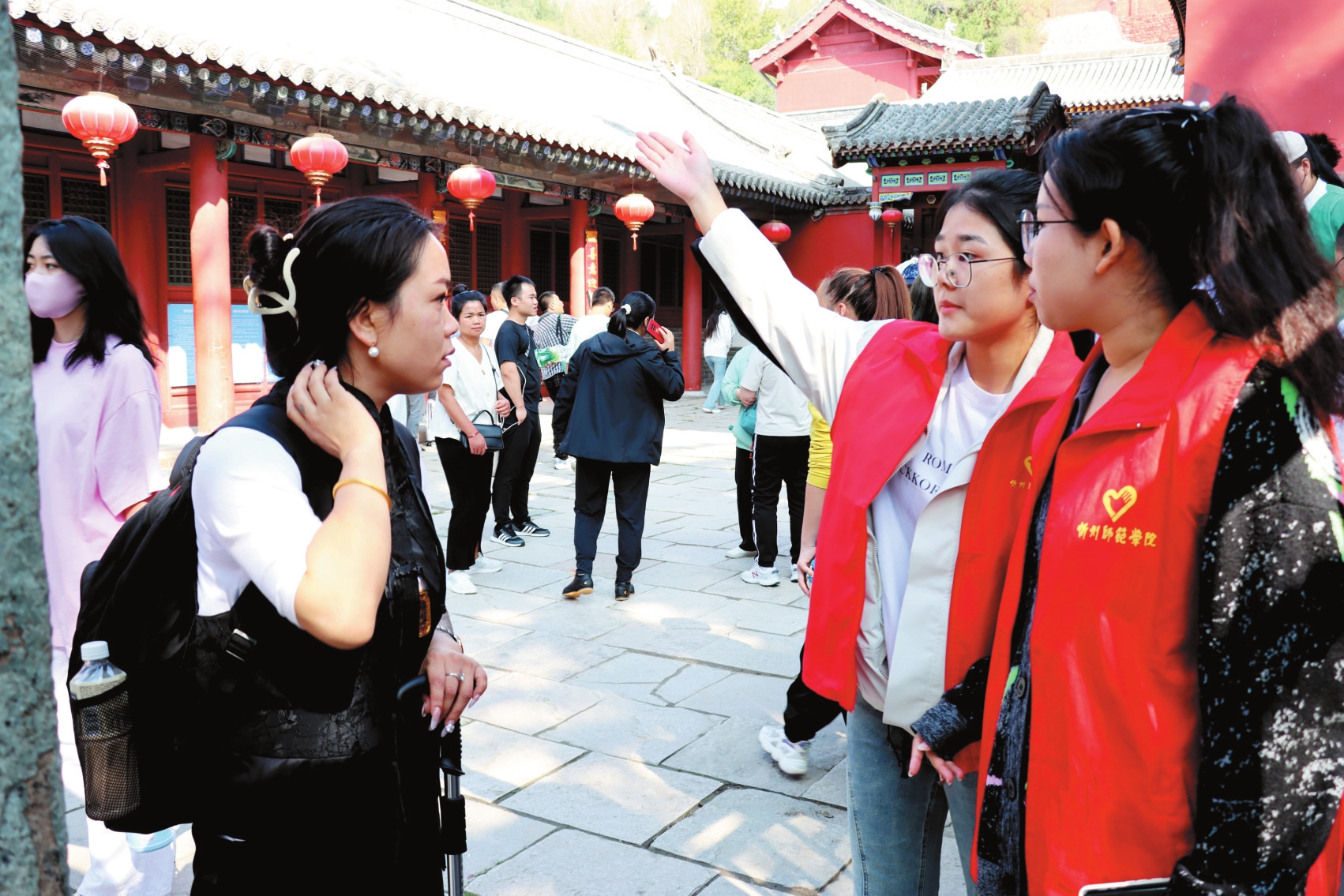 五臺(tái)山風(fēng)景名勝區(qū)志愿者積極開(kāi)展文明實(shí)踐活動(dòng),為游客提供全方位服務(wù)。本報(bào)通訊員攝
