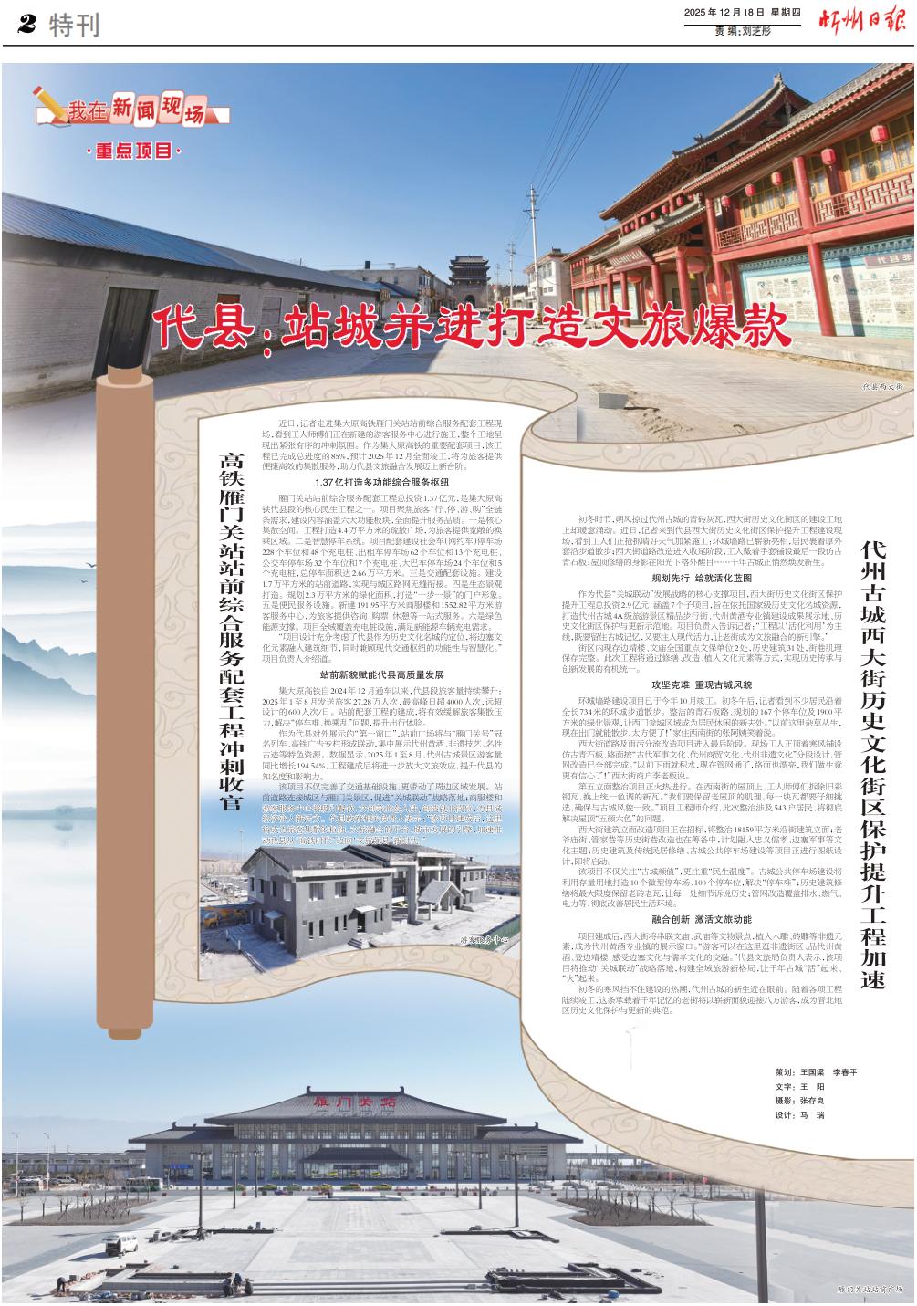 作為代縣對外展示的“第一窗口”,站前廣場將與“雁門關(guān)號”冠名列車、高鐵廣告專欄形成聯(lián)動(dòng),集中展示代州黃酒、非遺技藝、名勝古跡等特色資源。數(shù)據(jù)顯示,2025年1至8月,代州古城景區(qū)游客量同比增長194.54%,工程建成后將進(jìn)一步放大文旅效應(yīng),提升代縣的知名度和影響力。