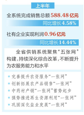 本報(bào)訊(記者高瑋)7月21日,全省供銷系統(tǒng)上半年經(jīng)濟(jì)運(yùn)行分析暨“五張網(wǎng)”構(gòu)建現(xiàn)場(chǎng)推進(jìn)會(huì)在長(zhǎng)治市武鄉(xiāng)縣召開(kāi)。今年以來(lái),全省供銷系統(tǒng)以“五張網(wǎng)”構(gòu)建為統(tǒng)領(lǐng),推動(dòng)供銷工作全面提質(zhì)增效,經(jīng)濟(jì)運(yùn)行穩(wěn)定向好。上半年,全系統(tǒng)完成銷售總額588.48億元,同比增長(zhǎng)4.58%;社有企業(yè)實(shí)現(xiàn)利潤(rùn)0.96億元,同比增長(zhǎng)14.44%。