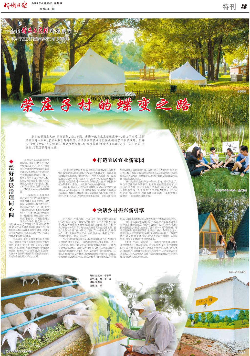 鄉(xiāng)村美、產(chǎn)業(yè)旺、農(nóng)民富……一幅和美的鄉(xiāng)村新畫卷正在神池縣榮莊子村徐徐鋪展。面向新征程,榮莊子村將繼續(xù)以“千萬工程”為牽引,全方位推動鄉(xiāng)村產(chǎn)業(yè)、人才、文化、生態(tài)、組織振興,加快建設宜居宜業(yè)和美鄉(xiāng)村,讓產(chǎn)業(yè)發(fā)展水平再提高、農(nóng)村人居環(huán)境再優(yōu)化、社會治理效能再提升,探索農(nóng)業(yè)農(nóng)村現(xiàn)代化的實踐新路徑。