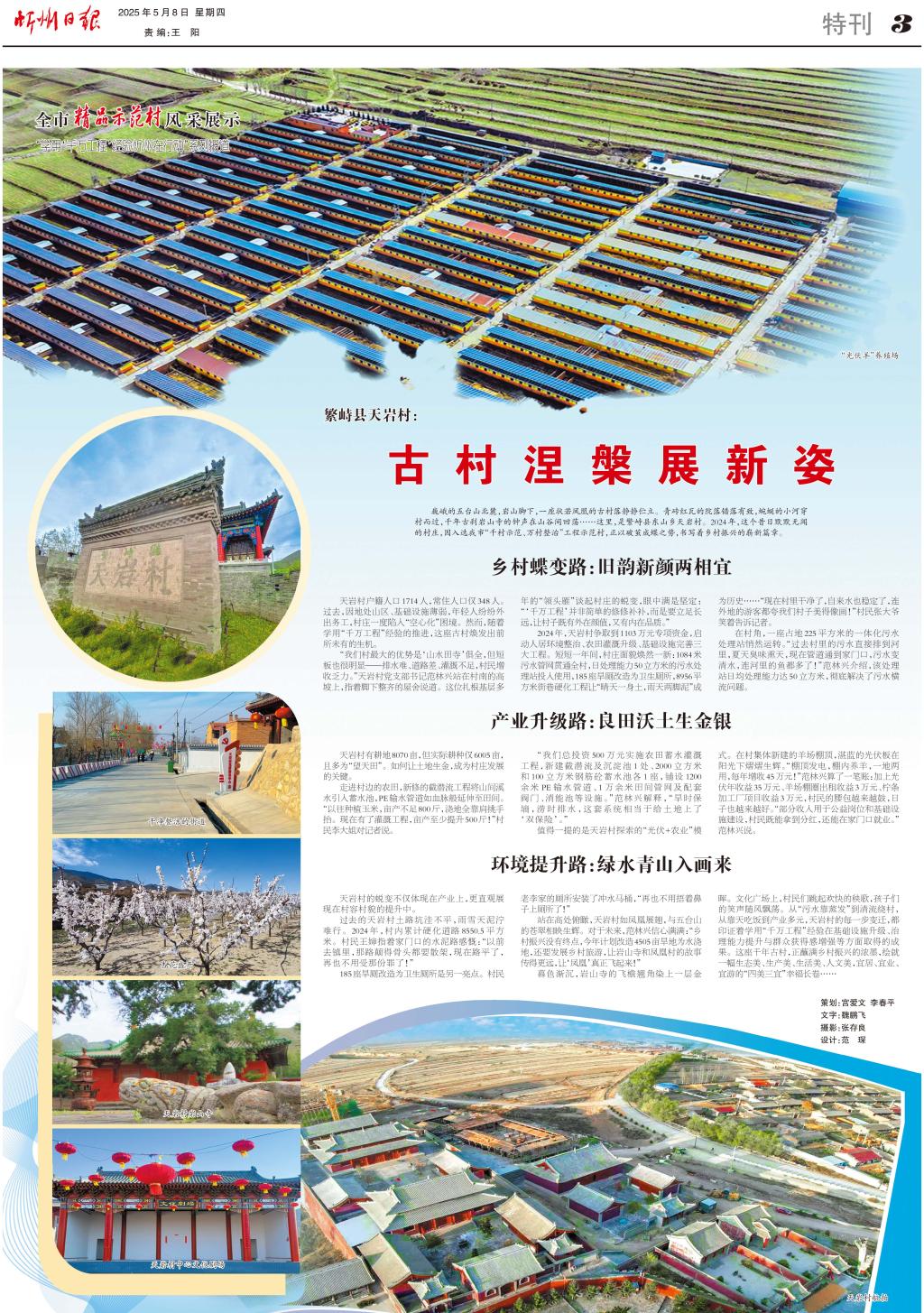 站在高處俯瞰,天巖村如鳳凰展翅,與五臺(tái)山的蒼翠相映生輝。對(duì)于未來(lái),范林興信心滿(mǎn)滿(mǎn):“鄉(xiāng)村振興沒(méi)有終點(diǎn),今年計(jì)劃改造4505畝旱地為水澆地,還要發(fā)展鄉(xiāng)村旅游,讓巖山寺和鳳凰村的故事傳得更遠(yuǎn),讓‘鳳凰’真正飛起來(lái)!”