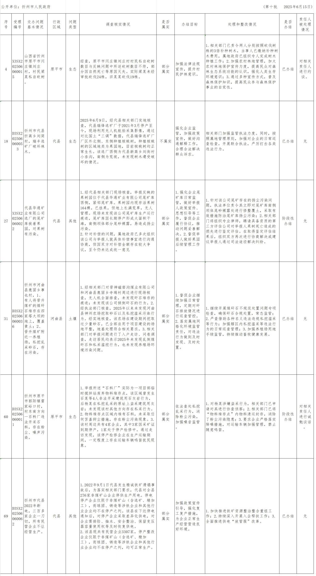 中央生態(tài)環(huán)境保護督察組群眾信訪舉報轉辦和邊督邊改公開情況一覽表