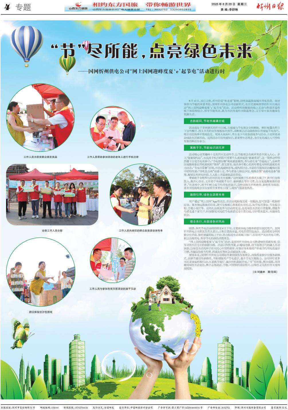 “網(wǎng)上國網(wǎng)迎峰度夏‘e’起節(jié)電”活動,是國網(wǎng)忻州供電公司推進(jìn)綠色低碳發(fā)展、倡導(dǎo)文明生活方式的創(chuàng)新實踐。活動以科技為翼、以趣味為媒,將節(jié)能理念巧妙融入互動體驗,讓綠色生活的種子在市民心中悄然萌芽,有效引導(dǎo)本地用戶養(yǎng)成節(jié)約用電的良好習(xí)慣,為建設(shè)資源節(jié)約型、環(huán)境友好型社會貢獻(xiàn)綠色力量。
