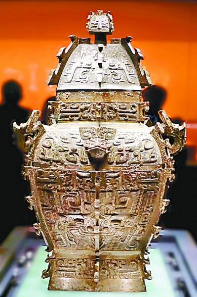 湖南省博物館藏的商代皿方罍(音雷,酒器)本報記者 李韻攝/光明圖片