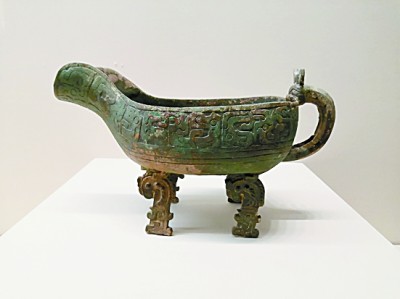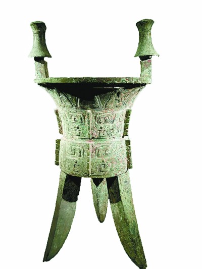 河南殷墟婦好墓出土的斝(音甲,飲酒器)本報記者 李韻攝/光明圖片