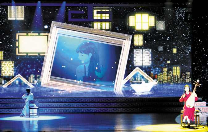 9月29日,第十屆中國曲藝節(jié)在河南省平頂山市文化藝術(shù)中心開幕,來自全國各地的曲藝演員為觀眾獻(xiàn)上一場(chǎng)精彩紛呈的曲藝盛宴。本屆曲藝節(jié)采取現(xiàn)場(chǎng)演出和線上展演相結(jié)合的方式舉辦。圖為在河南省平頂山市文化藝術(shù)中心,曲藝演員在舞臺(tái)上表演節(jié)目。( 新華社記者 郝 源 攝)