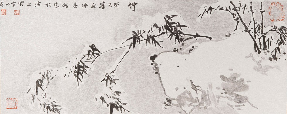 說(shuō)起賞雪,張岱的《湖心亭看雪》可謂較具代表性的一篇。“霧凇沆碭,天與云與山與水,上下一白。湖上影子,惟長(zhǎng)堤一痕、湖心亭一點(diǎn)、與余舟一芥、舟中人兩三粒而已?!弊髡哌\(yùn)用白描的手法,生動(dòng)地寫(xiě)出天空、云層、湖水之間白茫茫渾然難辨的景象。雙目所及之處,不過(guò)一道長(zhǎng)堤的痕跡,一點(diǎn)湖心亭的輪廓,還有一葉扁舟而已。