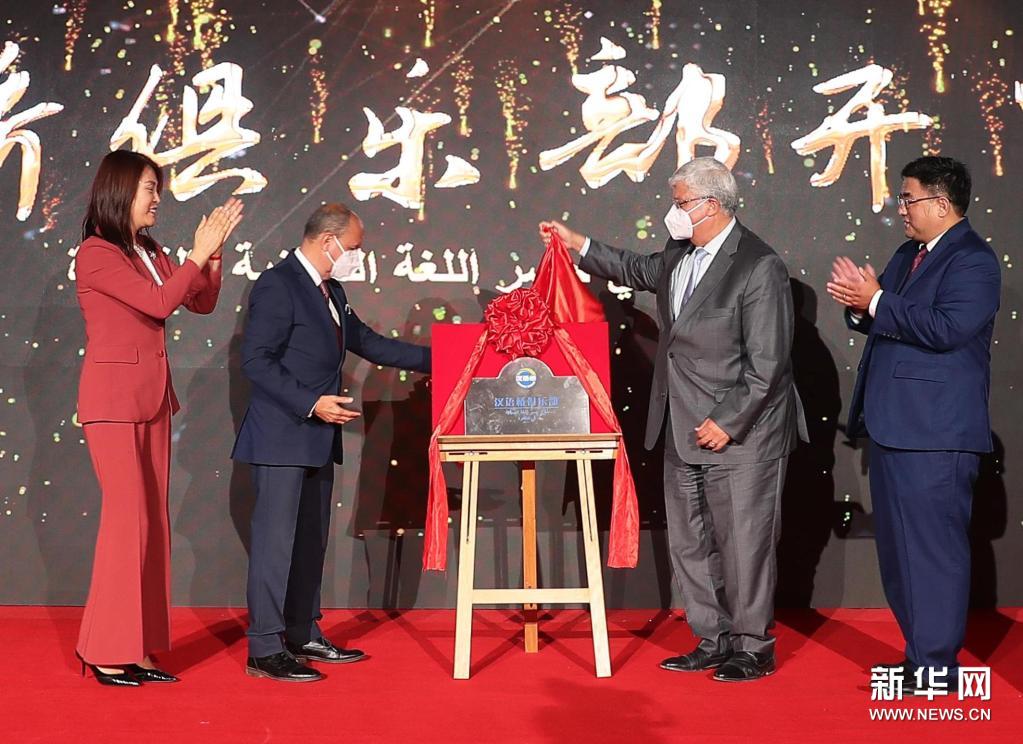 中國駐埃及大使廖力強、埃及高等教育部副部長穆罕默德·艾曼·阿舒爾和開羅大學(xué)校長穆罕默德·奧斯曼·霍希特等通過線上和線下方式參加了揭牌儀式。