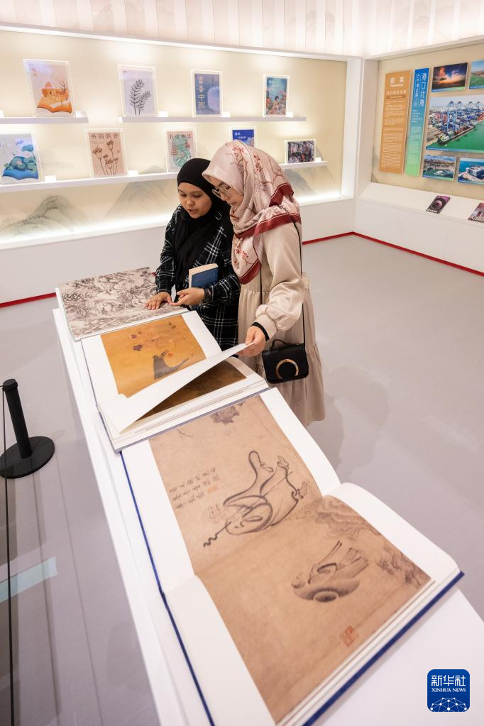 5月26日,觀眾在馬來西亞吉隆坡舉行的第40屆吉隆坡國際書展上觀看“中國歷代繪畫大系”特展展品。新華社記者 朱煒 攝