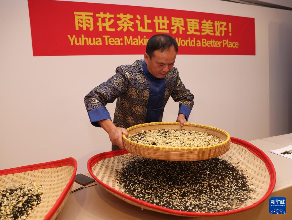 7月11日,在位于法國(guó)巴黎的聯(lián)合國(guó)教科文組織總部,南京雨花茶傳承人陳盛峰演示制作雨花茶。