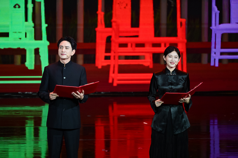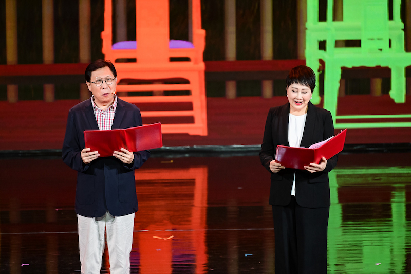 圖為國(guó)家話劇院演員韓童生、張凱麗朗誦《尼好,戲劇》