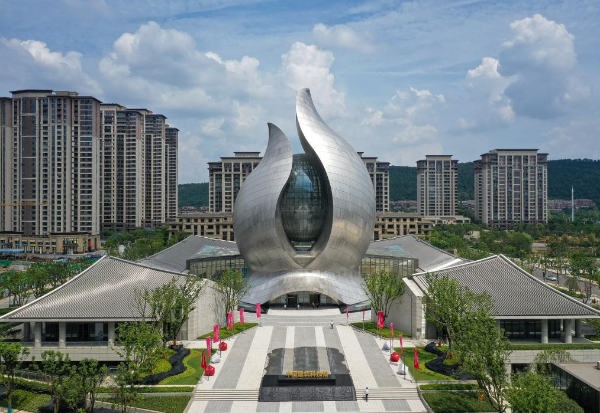 中間高起猶如破土而出的“種子”,被水波狀的“葉片”包裹著向天際延伸,合院環(huán)繞其四周,仿佛一幅建筑山水的絕妙圖景,點(diǎn)亮整個(gè)光谷。位于武漢東湖高新區(qū)的中國(guó)建筑科技館,在藍(lán)天白云映襯下格外搶眼。暑期,這里成為青少年觀(guān)眾游覽、研學(xué)的最佳選擇之一。